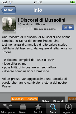 I discorsi di Mussolini finiscono sull'iPhone. E' L'offerta "A Noi"! Dura 20 anni.